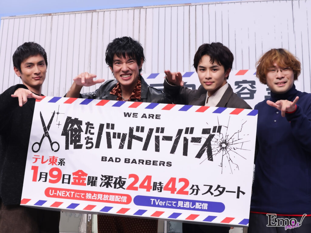 2026年1月8日、東京都内のスタジオでドラマ25「俺たちバッドバーバーズ」の 第1話&第2話先行試写会と制作発表記者会見 が開催されています。